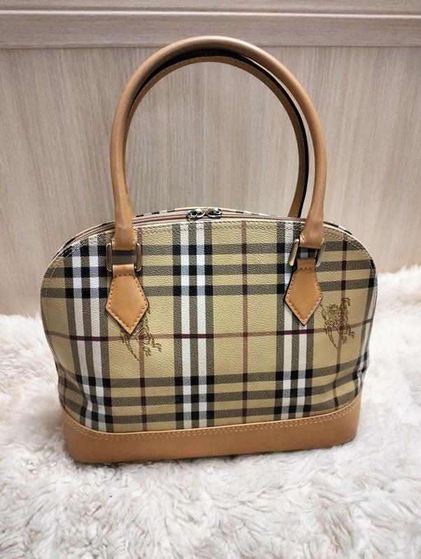 Сумка тоут Burberry винтаж натуральная кожа и канвас держит форму 29/23/10см, ручки 47см