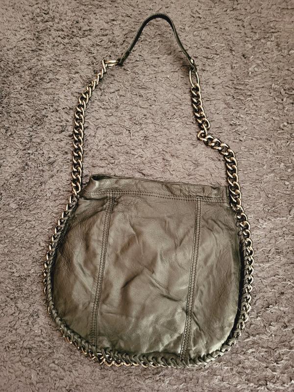 Черная кожаная сумка от бренда Oasis Натуральная кожа, подкладка из хлопка Оригинальная форма, застегивается на кнопку Замеры: Высота 28 Ширина 30 Без дефектов