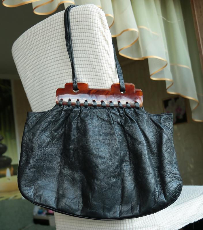 Чёрная сумочка из натуральной кожи Размер: ширина 38 см; высота 25 см (с ручками 51 см); толщина 1.5 см Состояние отличное; на одно большое отделение и внутри есть один маленький карман; мягкая зернистая натуральная кожа высокого качества