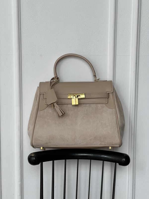 Сумка in Suede-Leather Сумка выполнена из гладкой кожи с компоновкой замши. Внутри одно отделение, также есть карман на застежке и открытый карман. Подкладка у сумки из черной кожи, в середине тиснения логотипа. Закрывается благодаря фирменному механизму с ремнями и замочком. Дополнительно украшена брелком с ключиком. Фурнитура металлическая, брендированная в золоте. Имеет ручку для носки в руке и широкий ремешок с не регулируемой длиной для ношения через плечо. Размер: 28*23*9см Материал: кожа+замша Максимальная длина широко ремня 90см код шоколад 20076-1 молочный 20076-2 хаки 20076-3