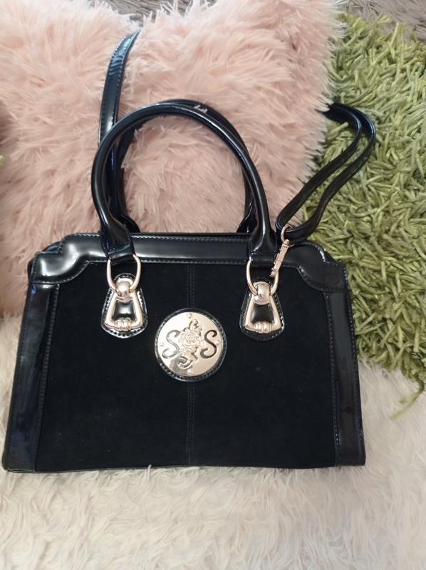 Сумка середнього розміру замша комбінована із лакованою шкірою розм 33 на 23