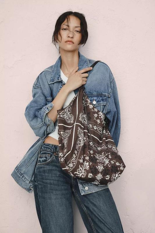 Текстильная сумка-шоппер с принтом. Два ремешка на плечо с металлической деталью. Внутренний карман. Высота x длина x ширина: 40 x 50 x 10 см. 6046/510/700