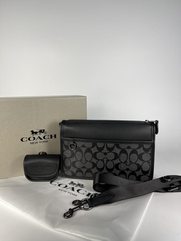 Мужская сумка мессенджер - это сочетание современного минимализма и практичности для ежедневного городского ритма. Выполнена из премиальной гладкой кожи в сочетании с фирменной канвой, она выглядит дорого, ощущается прочной и комфортно держит форму. Компактный размер 25×16x5 см идеально подходит для повседневных вещей: смартфон, ключи, документы, наушники или портмоне. Внутри - продуманное основное отделение, а снаружи расположено два функциональных кармана разного размера. Отдельная съемная монетница на карабине добавляет практичности - ее можно крепить как на ремень, так и на до самой сумки. Плотная брендированная подкладка и металлическая фурнитура подчеркивают премиальный характер модели. Текстильный ремешок легко регулируется, позволяя носить сумку так, как тебе удобно.