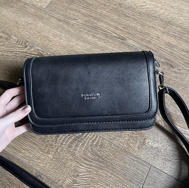 Сумочка Fuerya Milano з довгим ремінцем на плече (можна зробити коротким), магнітна застібка. 3 відділення, одне на замочку + прихована кишенька. Стан хороший, на останньому фото видно невеличкий дефект.