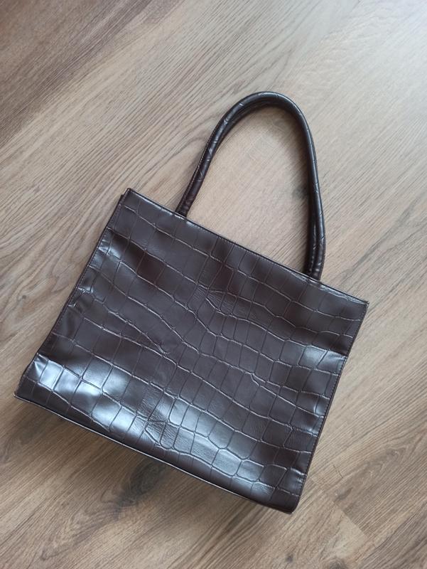 Коричневая базовая сумка как на работу так и на учебу Вмещает формат А4 Внутри 3 отделения, одно из которых на молнии, есть дополнительная косметичка (4 фото) Размеры 38х30х8 Есть незначительные потертости (последующие фото) но они не заметны при носке