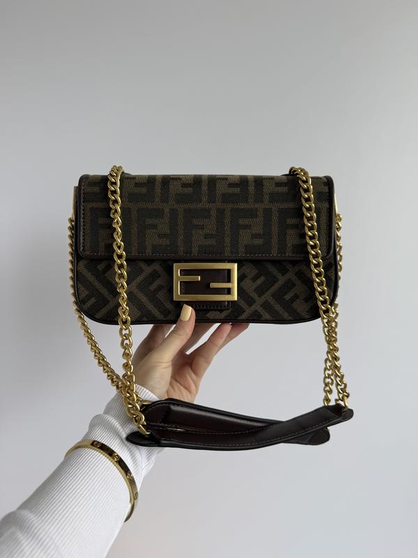 -Код товара: A0057 -Материал: Кожа + Текстильный канвас -Цвет: Коричневый (FF Monogram) -Фурнитура: Золотистого цвета -Размеры: 24 x 13 x 6 см -Стираина производства: Китай 🇨🇳 -Ремешок: Короткая ручка + съемный цепочный ремешок -Закрытие: Магнитная застежка с металлической пряжкой "FF" -Отделение: Основное отделение Внутренний карман на молнии
