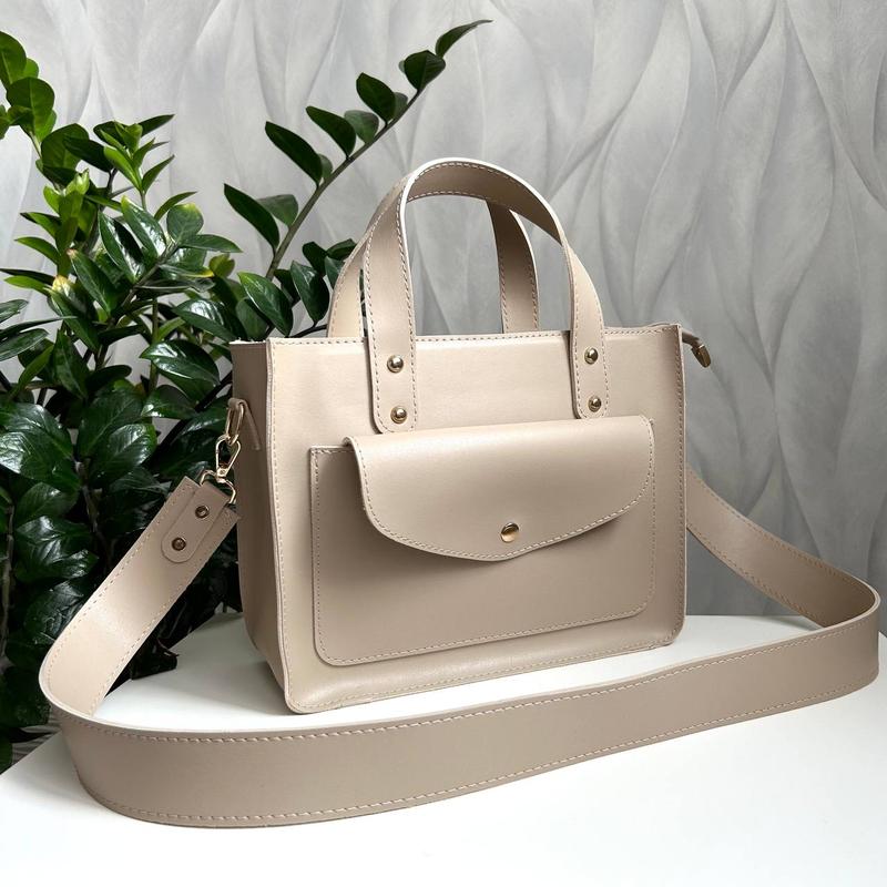 Темно бежевая сумка из эко кожи с карманом