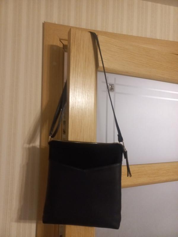 Очень вместительная, одно основное отделение и для 2-х маленьких. Заменитель кожи качественный и замши пасок регулируется