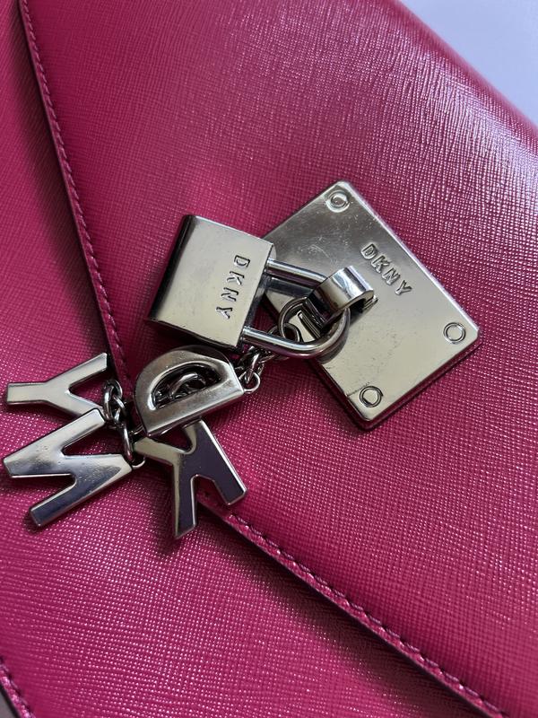 Сумка DKNY, оригинал; Цвет: фуксия; Материал: натуральная кожа; Фурнитура: серебристая Состояние: отличное, присутствуют незначительные потертости на фурнитуре.