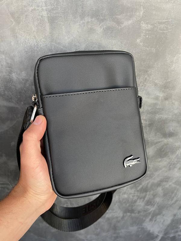 Артикул : СУ-048 ✅Бренд: Lacoste ✅Материал : 100% ПВХ( поливинилхлорид ) , текстильная подкладка ✅чёрный , синий ✅ спереди карман на кнопке , один основной отдел ( внутри него отделение на молнии и два мини кармана ) ✅ Размер 20*15*4см 📸живые фото 📸 —————————————————— арт.62