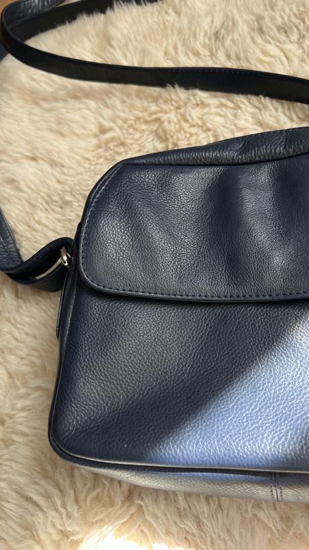 Женская сумка в глубоком-синем цвете, с длинной цепочкой, которая регулируется.