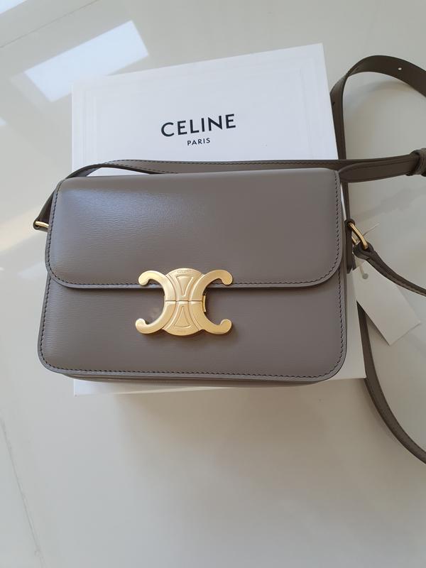 Сумка CELINE,натуральная кожа серого цвета, длина ручка,золотая фурнитура. 13×18,5.