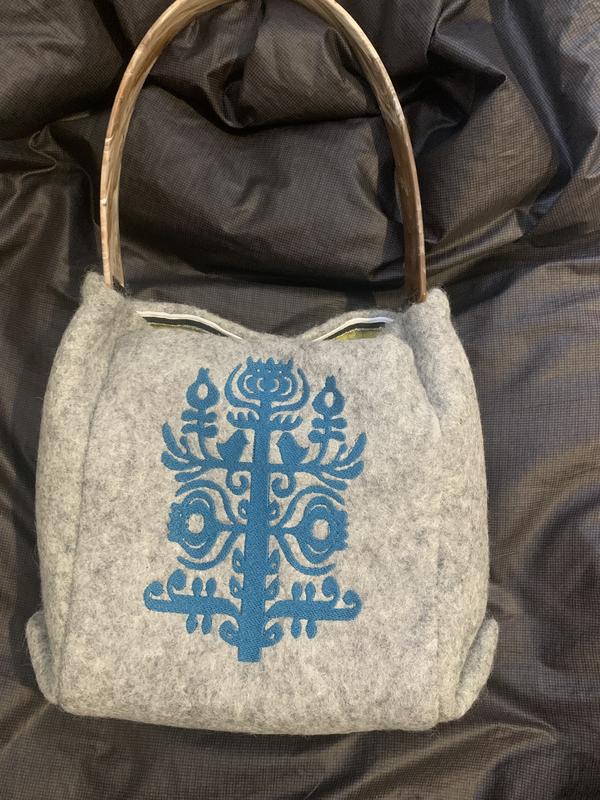 Сумка выполнена в технике мокрого валивания в сочетании с машинной вышивкой, имеет карман на магнитных застежках, ручка через зовет, единственная без повторов