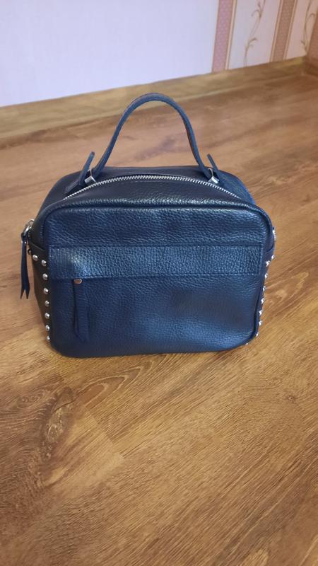 кожаная небольшая сумочка,кожа флотар,зернистая,кожа мягкая и приятная на ощупь,меет кармашек впереди,длинный поясок регулируется,размер высота 17 см,ширина 22см.