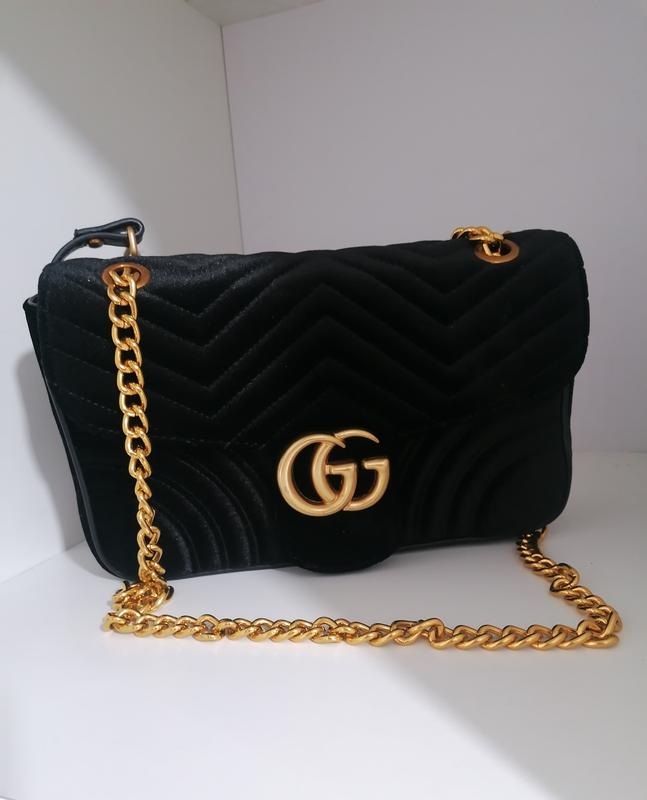 Сумка от бренда Gucci, привезенная из Германии. Производство Италия. Имеет прямоугольную форму, закрывается на молнию и замок. Изготовлена из велюра и эко кожи. Сумка на одно отделение, в котором кишение на молнии. Сумка имеет плечевой ремень цепочку. Металлическая фурнитура золотистого цвета. Украшена металлическими элементами. Красивая и стильная модель, которая дополнить любой ваш образ. В идеальном состоянии. Длина ручки: 140 см; Ширина: 27 см.; Высота: 17 см.; Глибина: 6 см.; Цвет: черный; Форнитура: золотая. Цена: 1800 грн. Смотрите другие наши объявления.