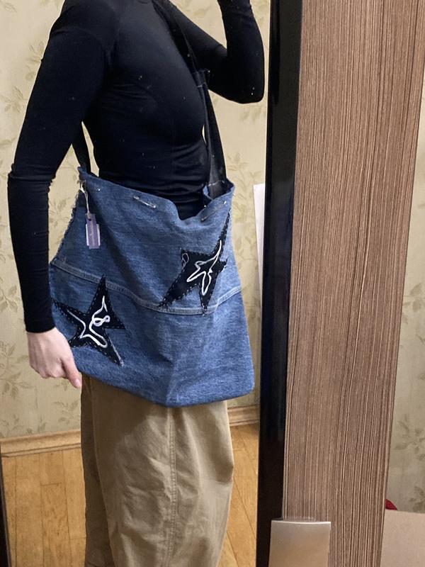 Большая сумка в стиле recycling, ручная работа. Через плече