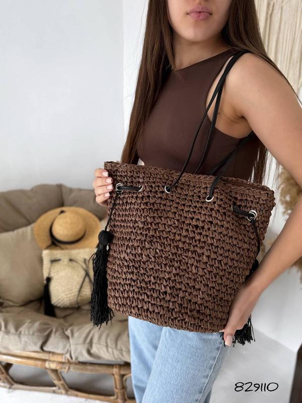 Цвет: Айвори ; шоколад Материал: плетеный мешочек с эко кожей на подкладке Размер: 35/30 мешочек Красивый декор в виде косточек ручной работы ✅