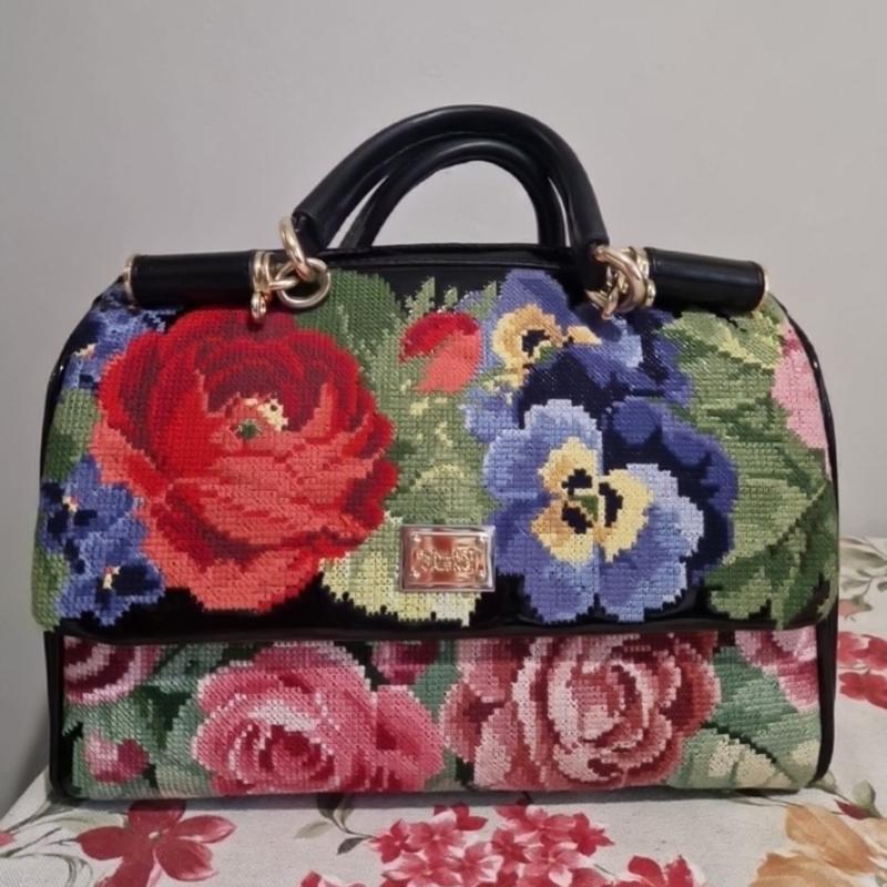 Женская сумка. Лакированная из качественного материала, ручки натуральная кожа. Яркая вышивка! Удобная форма, вместительная, имеет внутренние карманчики с молнией. Хорошее состояние!