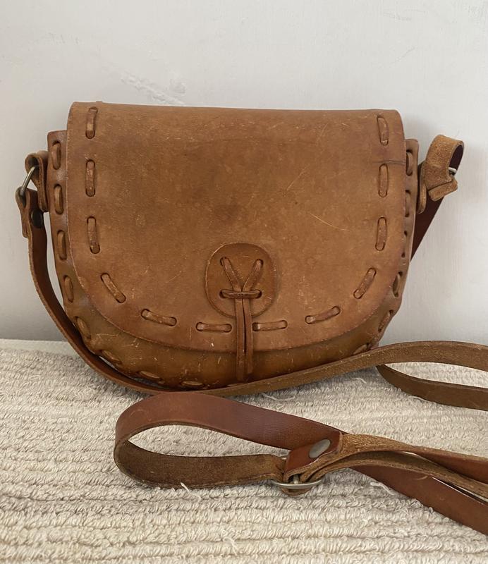 Сумка з щільної цупкої натуральної шкіри Клапан на магнітній кнопці Довга ручка з регулюванням Всередині без підкладки без кишень Дуже добрий стан без дефектів Тримає форму Ширина 20 Висота 14 Глибина 4 Ручка макс 135
