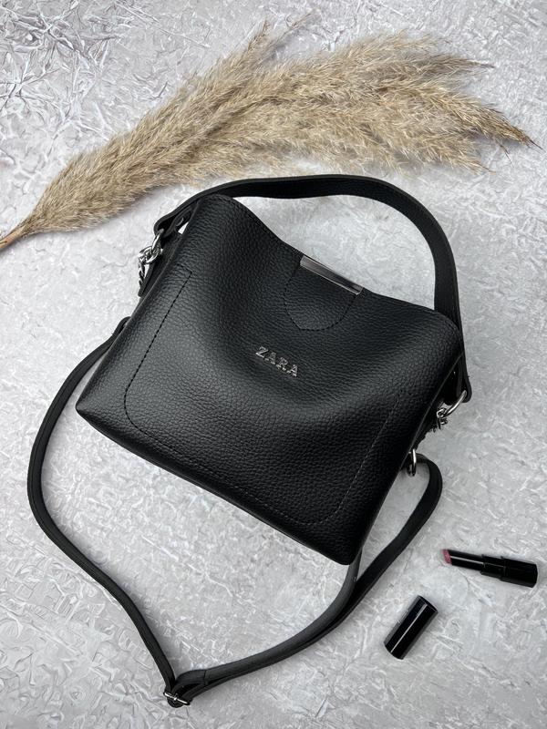Сумка ZARA black •люкс якість •еко шкіра люкс якості •два відділення + третє на блискавці •ДУЖЕ містка •шкіряна ручка + довгий шкіряний ремень •розмір 23*16*10 •комплект: коробка, папір Tissue, стікер •є накладний платіж, відпрака в день замовлення