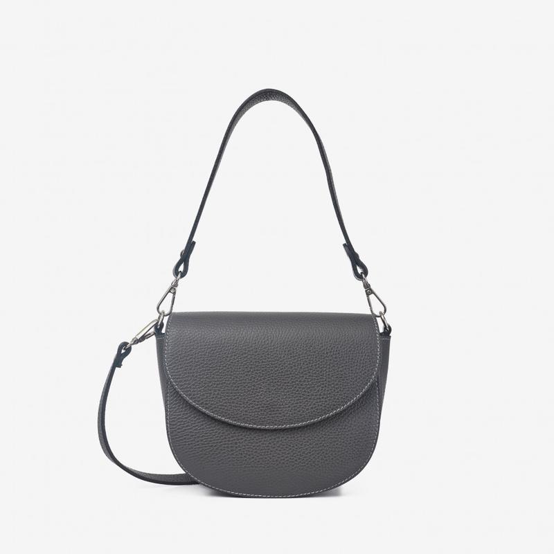 Матеріал: натуральна зерниста шкіра Виробник: Італія Розмір: 18•15•7 см Колір: темно-сірий Додатковий ремінь: так