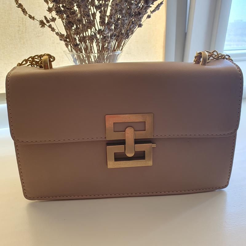 Бежевая сумочка, купила на Temu, новинку, на ремешке, экокожа. Высота - 14 см, длина - 23 см.