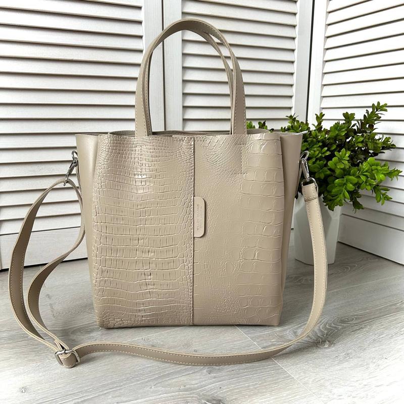 Женская сумка большой свет коричневая мокко рептилия кожаная из эко кожи тоут трапеция