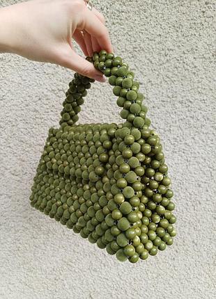 Твоя трендова сумка🌟 Сумка з намистин/бусин ручної роботи 💕 Виконана з бархатними та гладкими намистинами, які мають гарне поєднання🪷 Колір:оливка💚💚 Доступна під замовлення в різних кольорах. Ціна:2300 грн.
