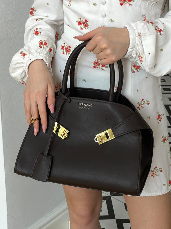 Женская сумка Описание: Цвета: черный, коричневый, бежевый, бордовый Бренд Ferragamo основан во Флоренции в 1927 году Ferragamo стал мировым лидером в сфере роскоши Материал: гладкая кожа Внутри - одно отделение, один внутренний карман на молнии и съемный аксессуар - кольцо для ключей Подкладка - из черной кожи Додатково прикрашена брелком Металлическая фурнитура золотого цвета Имеет ручку для ношения в руке и узкий ремешок (длина регулируется) для ношения через плечо Размер: 31*22*16см Максимальная длина широко ремня - 120см Пильовик - в комплекті Цена: 3999 грн.