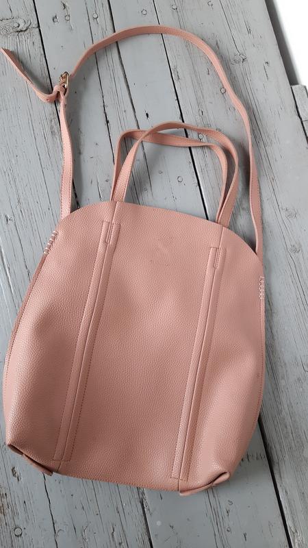 Очень красивая, стильная сумка! В идеальном состоянии Цвет- припиленный розовый длина 38- 44 см Ширина 36- 46 см коротка ручка 20 см длинная - регулируется Внутри карман на замку великий та маленький