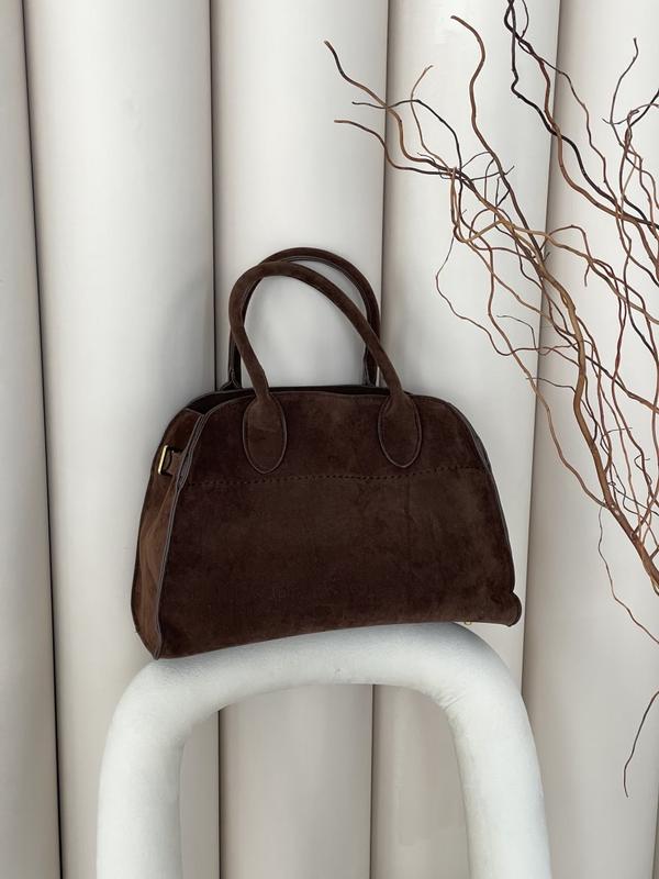 ⚪️⚪️⚫️⚪️⚫️ ⚫️⚪️⚫️⚪️⚫️⚪️⚫️ Жіноча сумка в стилі THE ROW textile - Medium код ан м коричневий - 1002-1 Сумка виготовлена з штучної замші. Основний відділ відкритий закривається на карабін, додатково є кишеня на застібці для дрібниць. Підкладка у сумки з світлої тканини. Фурнітура металева в золоті. Має ручки для носіння у руці та вузький ремінець з регулюємою довжиною для носіння через плече. Розмір: 33*23*15см Матеріал: штучна замша. Максимальна довжина ременя 120 см