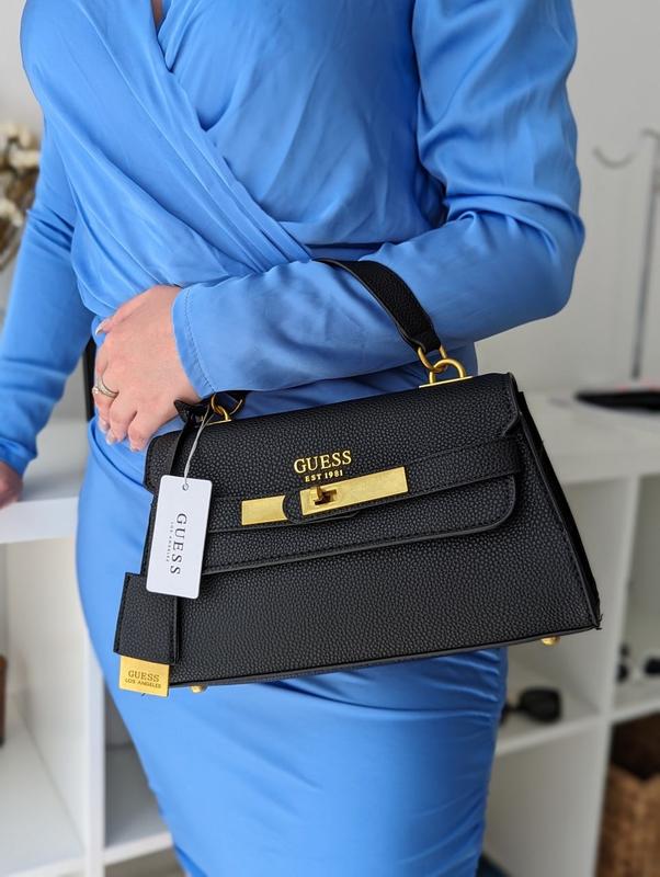 Сумка Guess Enisa ЯКІСТЬ LUX ✔️ код чорний 20442-1 білий 20442-2 Розмір: 27 х 16 х 9 Матеріал: еко-шкіра преміум якості Міцна фурнітура метал - золото. 1 відділення, 2 кишені на блискавці, 2 відкриті кишені. Довгий ремінець в комплекті 120см