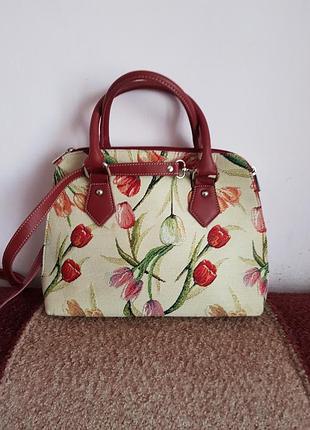 Великолепная гобелленовая сумка "тюльпан" Молния растекается на две стороны.Есть длинный раменец.Высота-23 Длина-36 Ширина-12см.