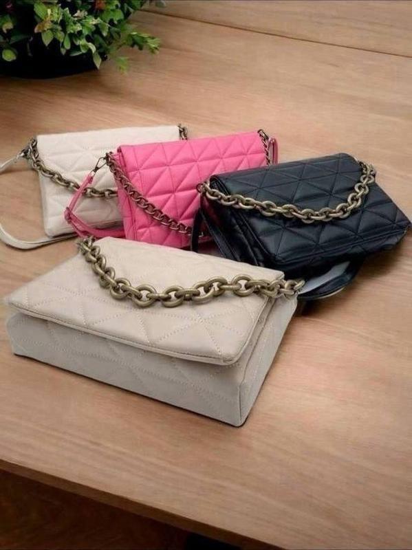 Сумка №С2 Цена 700 грн Ткань экокожа Производитель Турция 🇹🇷 Коляры беж,розовый, черный Стеганая женская сумка среднего размера с ручкой-цепочкой - модель для настоящих модниц! Сумка выполнена из стеганой экокожи, имеет одно отделение с подкладкой на молнии.Внутри открытый карман и карман на молнии. Дополнительно закрывается магнитный клапан. Размеры сумочки: 30 см ширина по дну, 18см высота, 6 см глубина.