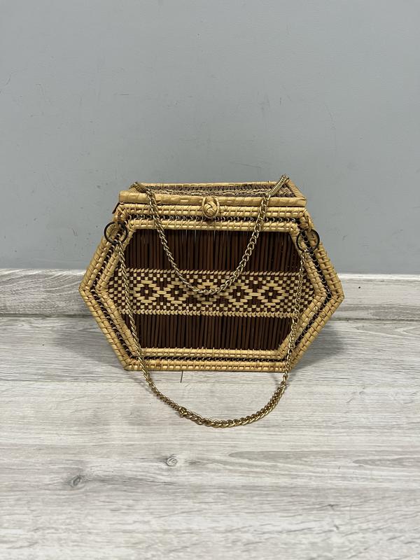 Плетена сумка в ідеальному стані. Розмір: Висота 18см. Ширина 25см. Глибина дна 11см. Довжина ручок 54см.