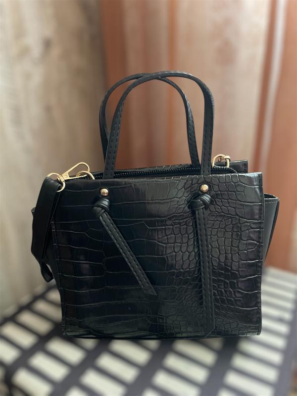 Квадратна чорна сумка рептилія, має застібку Всередині одне велике відділення, та одна маленька кишенька бокова