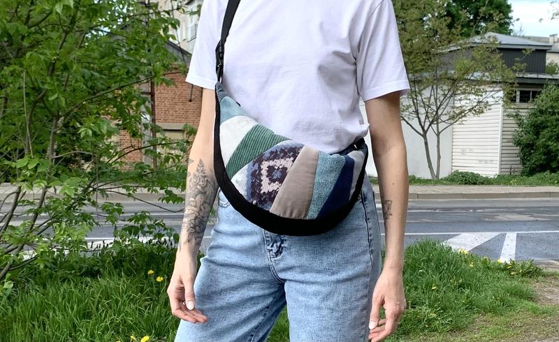 Сумка moon bag upcycle від APELSYNOVA torba в трендових кольорах. Унікальна в неповторна. В міру тримає форму, оскільки ущільнена синтепоном, в середині має підкладку і кишеню, ремінець регулюється Блискавка Ykk Містка, зручна і оригінальна