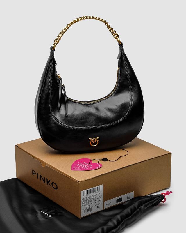 👜 Pinko Classic Brioche Bag Hobo Black (Арт: 99312) 📐 Размер: 30 х 27 х 6 см 🧵 Материал: Кожа 🔎 Описание: Сумка изготовлена из коровьей кожи. Внутри большое отделение, также есть карман с фирменным тиснением. Закрывается главное отделение на застежке. Подкладка у сумки текстильная, на ощупь напоминает замшу. Цепочка имеет фиксированную длину, дополнительных ремешков не предусмотрено в комплекте. Комплектуется в фирменной коробке и пыльнике.