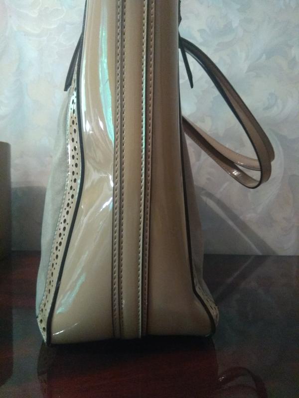 Сумка бежевая размер 42 см х 25 см куплена в США удобная большая внутри карман на молнии