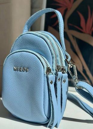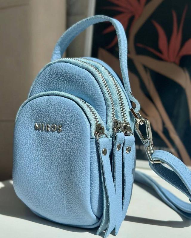 Ніжно-блакитна — новий топовий колір сумочки МЕРІ! Цей відтінок — справжній мастхев весни, він одразу приковує погляди та додає легкості кожному образу. 🔹 3 відділення на блискавці 🔹 Натуральна шкіра, металева фурнітура 🔹 Розмір: 17/12/4 см 🔹 Шкіряний ремінець у комплекті