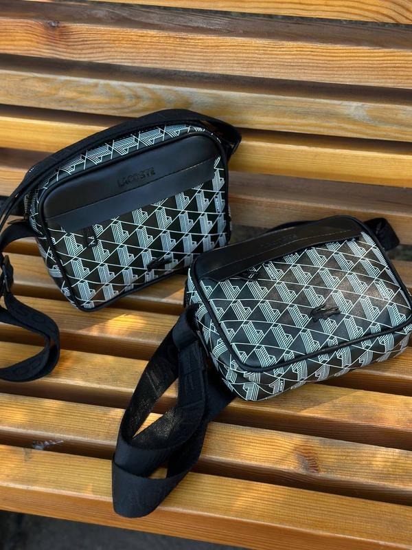 Розмір 20х16х6 см. Матеріал:еко шкіра, металева фурнітура. Колір:чорний монограм
