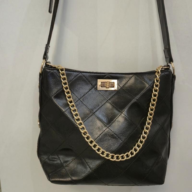 класна чорна сумка з ланцюжком , два відділи в середині . висота 24 см , ширина 31 см