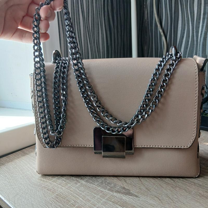 Сумка из натуральной кожи. Невероятное качество на выдержка. Очень добротная сумка. Недостатки: надо стирать середину, железную цепь чуть потерял чисто черный цвет, но это не падает в глаза, кажется, что так и должна быть, какая-то черная точка сбоку, затертая железная часть от пользования. Классная сумка. По дополнительным фото/информациям, пишите.