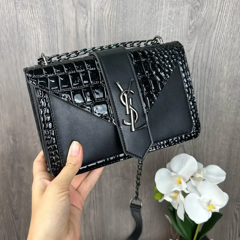 Женская мини сумочка-клатч в стильном дизайне под рептилию - изящный аксессуар для модного образа. Выполнена из премиальной лаковой экокожи, хорошо держит форму и имеет глянцевый блеск. Стиль YSL подчеркивает статус, а удобная цепочка со вставкой из экокожи позволяет носить сумочку через плечо. Характеристики: Материал: лаковая экокожа премиум качества Дизайн: под рептилию стиль YSL Хорошо держит форму Качественная металлическая фурнитура Ремешок: цепочка + вставка из экокожи Размеры: • Длина - 23 см • Высота - 15 см • Ширина по основанию - 7,5 см Эта сумочка станет отличным дополнением к любому вечернему или стильному повседневному образу. Она подойдет как для важных событий, так и для изысканных вечеров, когда важно выглядеть элегантно. Также может быть отличным подарком для модниц, которые ценят стиль и качество.