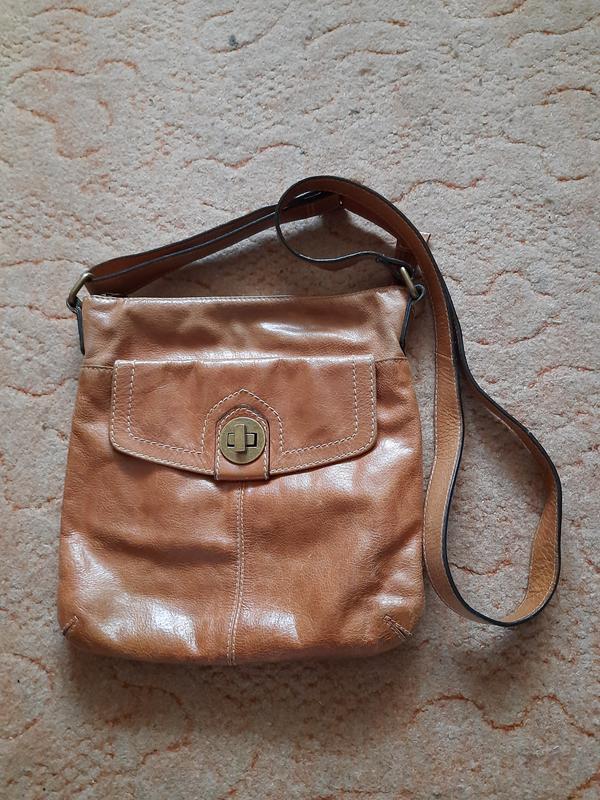Женская сумка из натуральной кожи, через плечо. Свет коричневого цвета. Удобная, практичная, на каждый день.