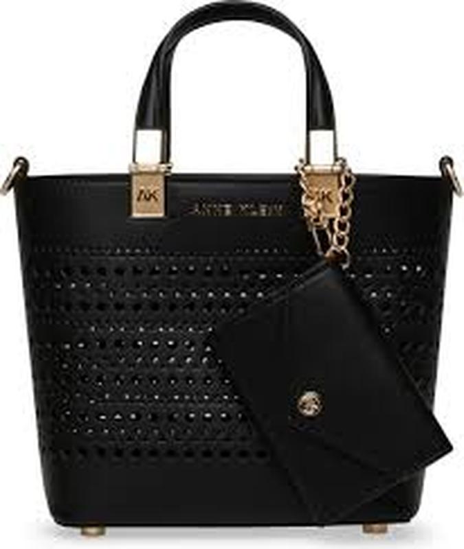 Черная мини-сумка с перфорацией Перфорация разной формы добавляет легкий вид сумке-тоут с верхней ручкой со съемной сумкой на молнии для защиты ваших самых необходимых вещей. Две верхние ручки; дополнительный ремень через плечо Магнитная застежка сверху Включает съемную сумку на молнии. Этот шикарный мини-портфель от Anne Klein имеет привлекательный перфорированный дизайн и включает в себя съемный футляр для карточек для дополнительного удобства. Блестящая соломенная сумка превращается в стильное кроссбоди с регулируемым ремешком, что делает его идеальным аксессуаром для отпуска или позднего завтрака. Этот функциональный предмет без застежек и внешних карманов идеально подходит для тех, кто ищет стиль и простоту. Этот мини-портфель имеет перфорированный дизайн и комплектуется съемным футляром для карточек. Он также имеет куполообразный блестящий соломенный мешочек, который выполняет роль перекрестья, если использовать входящий в комплект ремешок. Идеально подходит для отдыха или пойти на поздний завтрак. Без внешних карманов Без внутренних функций Перфорированный дизайн, съемный футляр для карточек и блестящая соломенная сумка, которая превращается в кроссбоди Трансформированный ремень, который можно отрегулировать до максимальной длины 24" Размеры: 23,5 x 11 x 18 см;