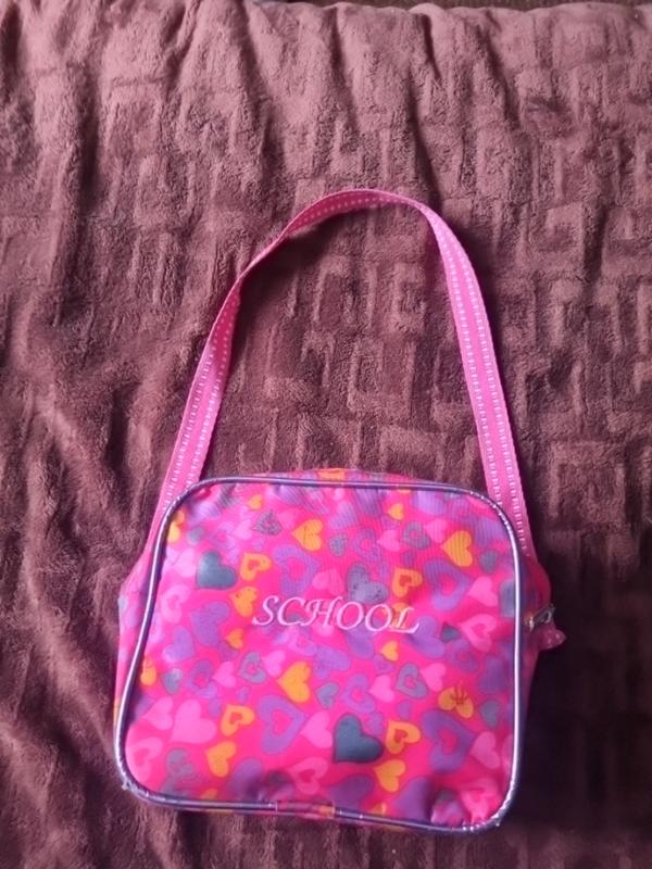 Сумка розовая принт сердца На ручке Надпис на принті "School" Замеры на фото