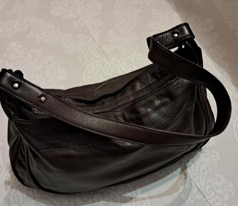 Кожаная сумка. Подкладка лен. Ш 35. В 22. цвет темный шоколад