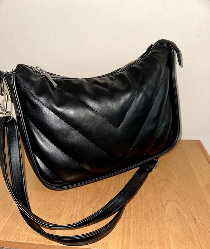 Сумка розміром 29х21 Має довгий ремінь На загальному замку Всередині два переділених відділення Збоку теж є замочок