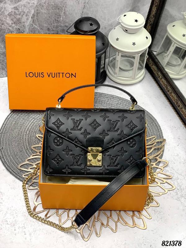 821378 Новинка ❤️🔥👜 Сумка Лу кожа текстурная люкс Цвет: черный Размер: 23/17 Фурнитура с лого Длинный ремешок цепочка комбинированный Материал: натуральная текстурная кожа